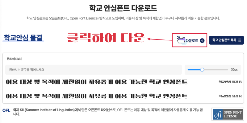 ↓↓학교안심 물결 말고 다른 폰트 구경 하러 가기↓↓