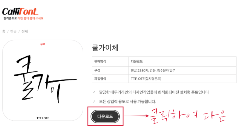 폰트 다운로드 : 캘리폰트 홈페이지 - [바로가기]