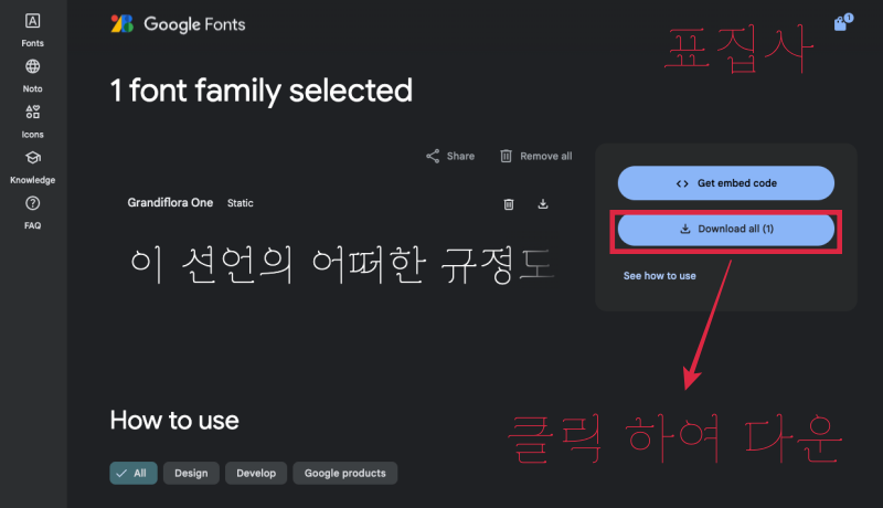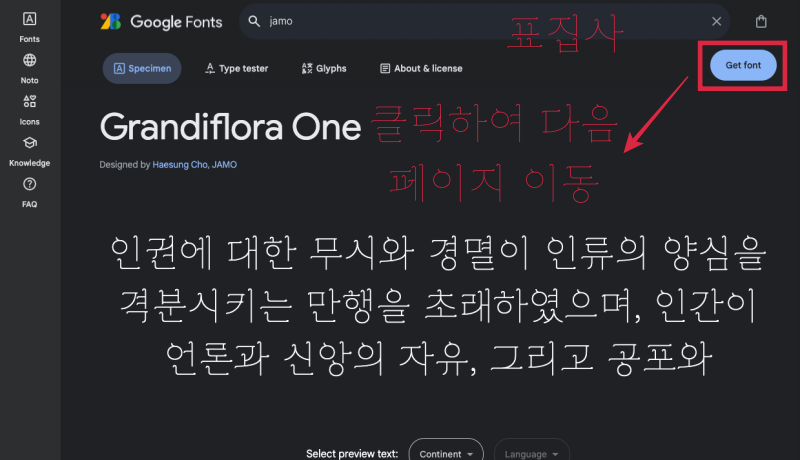 1. 위의 '구글폰트' 홈페이지 링크를 통해 홈페이지 이동