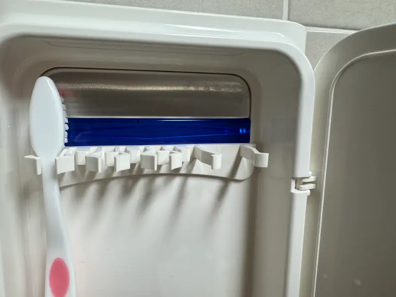 칫솔 살균기 문을 열어서