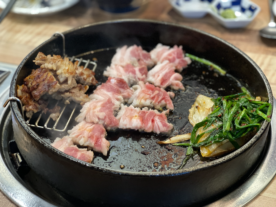 고기도 부드럽고 함께 구워 먹는 부추, 백김치 간이 잘 맞아서 함께 먹으면 질리지 않고 잘 먹을 수 있었습니다.