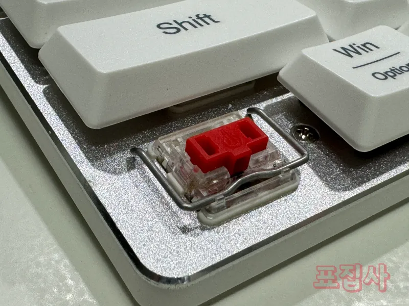 키캡을 제거하면 푹 파인 형태가 아니라 알루미늄 프레임판이 있어서