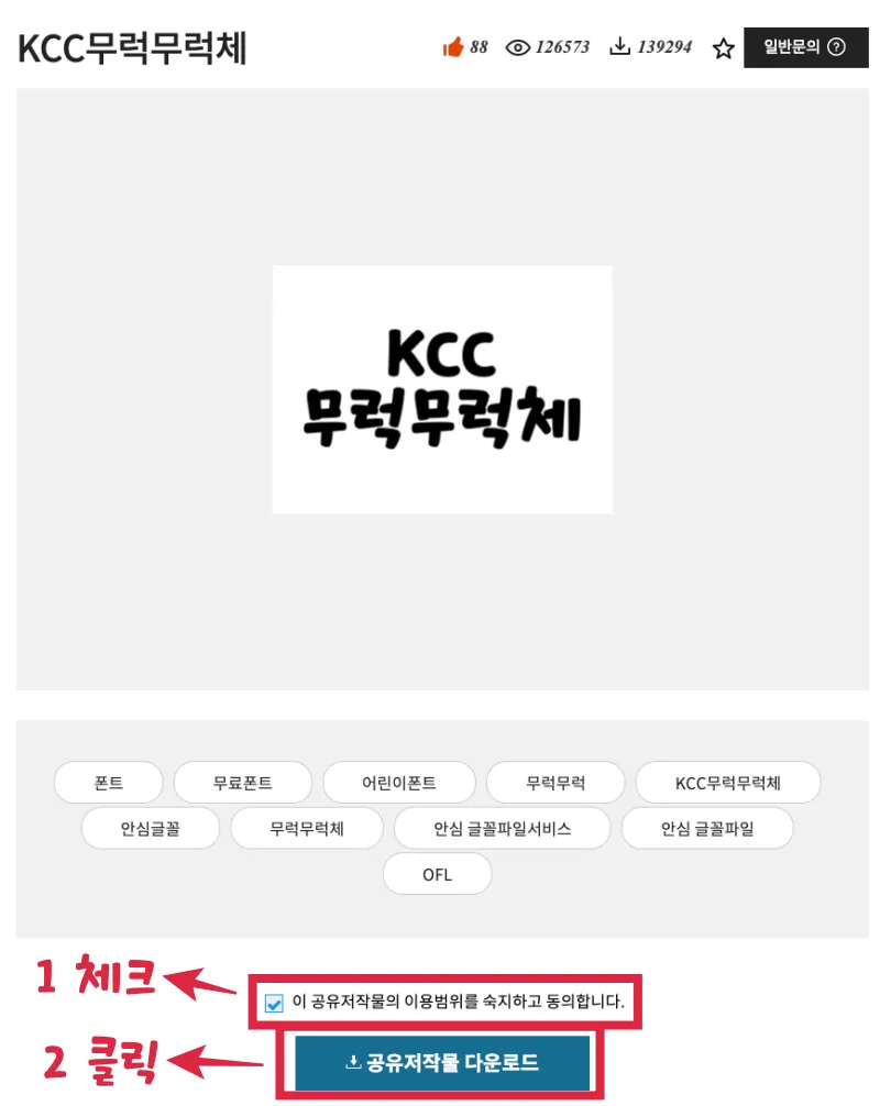 어린이 컨텐츠에 어울리는 KCC무럭무럭체 다운로드 및 저작권 확인